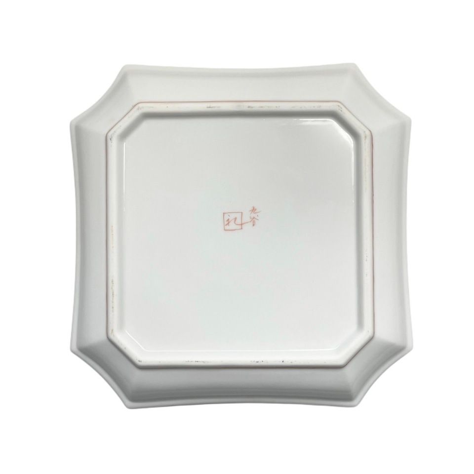 [Reiko Fukushima] Red enamel and fine-painted scroll scroll design on a six-sided corner cut square dish