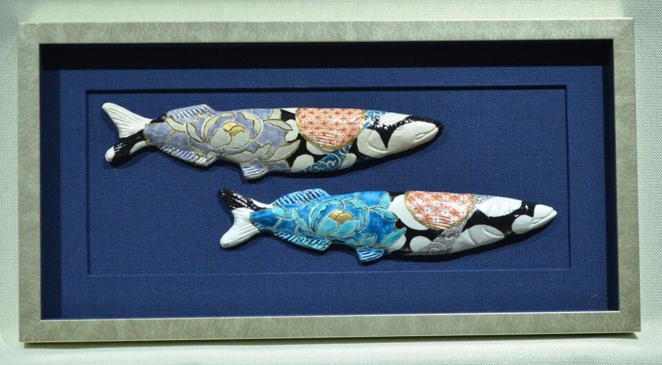 This is a work by Kutani Yaki artist Takeshi Sato. The motif of this ceramic frame is a fish, a sea bream.