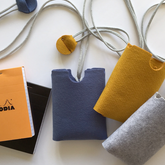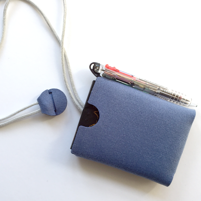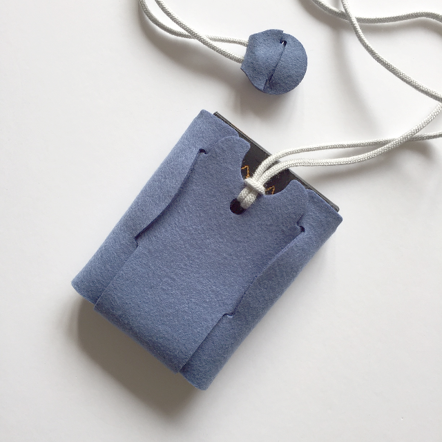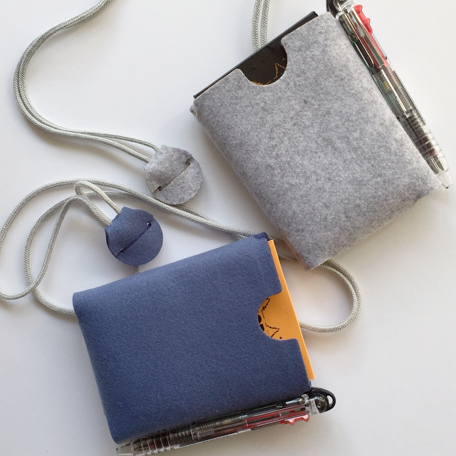 A7 memo (RHODIA memo is No.11) size memo case with neck strap. Both sides can be used to hold a pen, making it a utility item for writing notes whenever necessary. The felt material is almost weightless, and the felt is a fashionable material that is very compatible with items worn on the body. Washable felt is used for cleanliness. The insert type construction makes it easy to lay flat for washing.