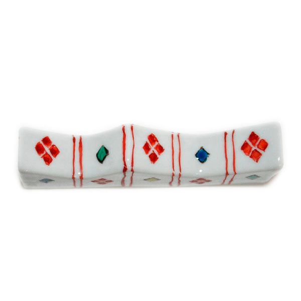 This is a brush rest with a rhombus design that is housed in a Hatoyado-sama. It is designed to hold a thick brush and a thin brush side by side. It can also be used as a chopstick rest.