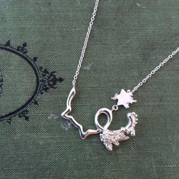 This necklace is from the same series as the ring of a cat with one ear tilted and listening.