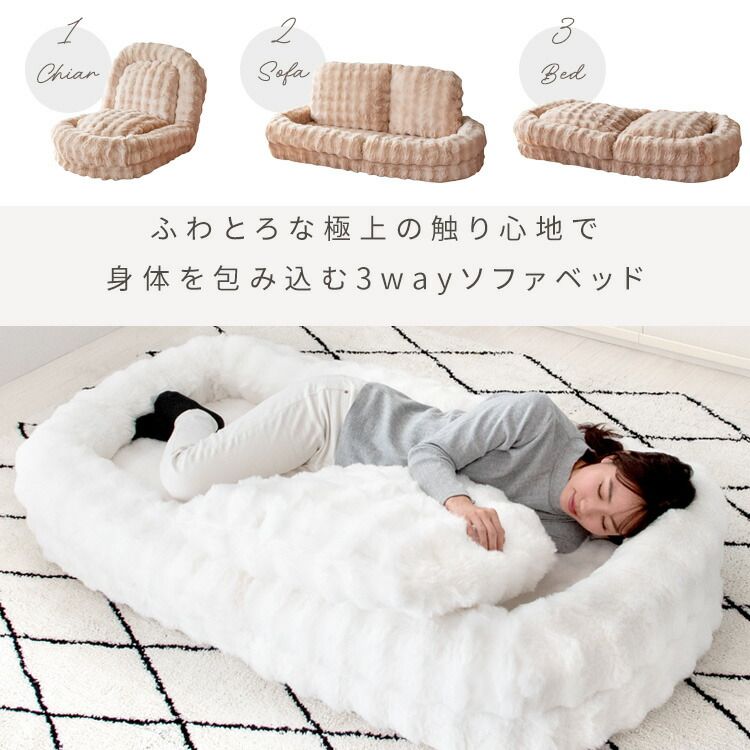 Foure" is a nestled sofa bed that can be used in three ways: as a seat, a sofa, and a bed, allowing you to spend all day long. The melt-in-your-mouth microfiber fabric and soft cushions will soothe you.