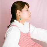 One earring has a leaf motif on the catch (in the case of clip-on earrings, the ear metal fittings), and when viewed from the front, they overlap to form a layer, which gives the earrings an even prettier look with their depth.