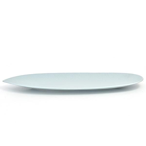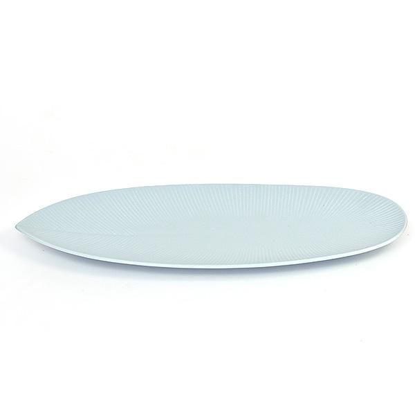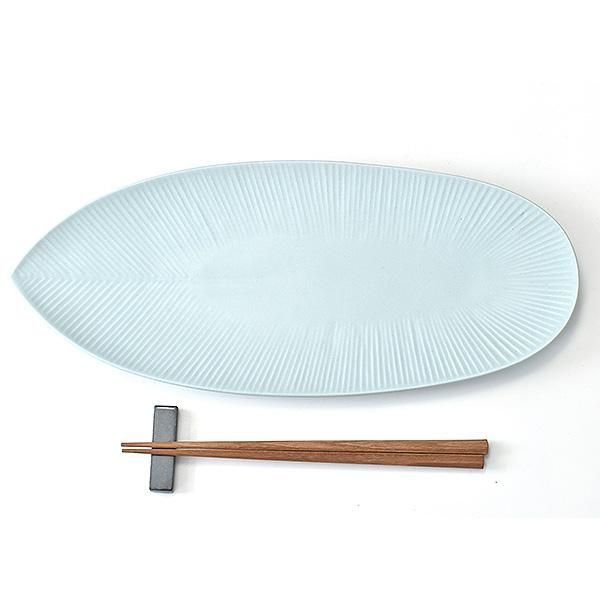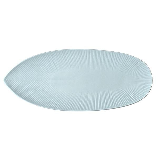 Moa pale blue 32cm long plate, large, blue, Western tableware, platter, shaped plate, made in Japan, Minoyaki, café style.