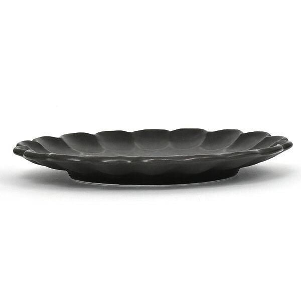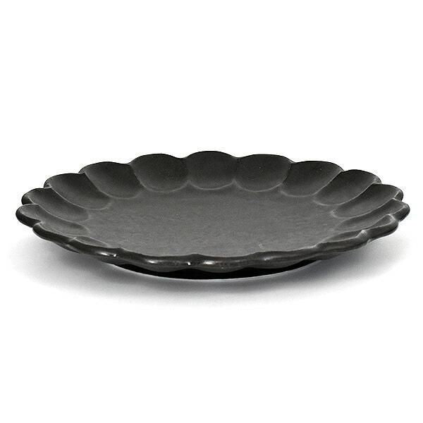 Linka Black 27 Plate, black Japanese tableware, round medium plate, made in Japan, Minoyaki, stylish, modern.