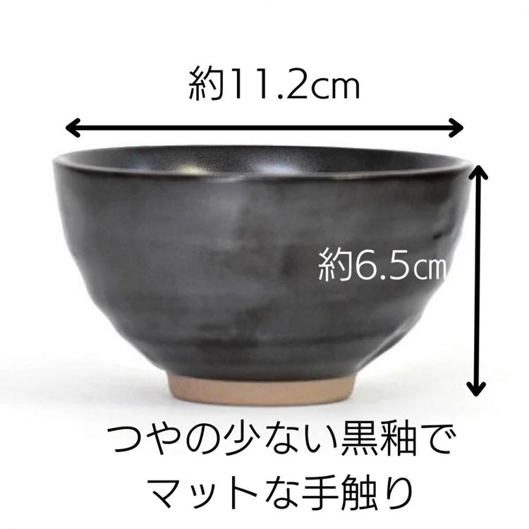 Rokubei Tea Bowl, Iron Crystal, Black, Japanese Tableware, Tea Bowl, Rice Bowl, Made in Japan, Minoyaki, Stylish, Modern