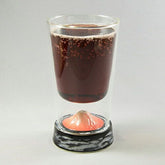 The glass is a double-wall glass that retains heat and cold. It keeps cold drinks cold and prevents condensation, while hot drinks stay hot and can be held without being hot.