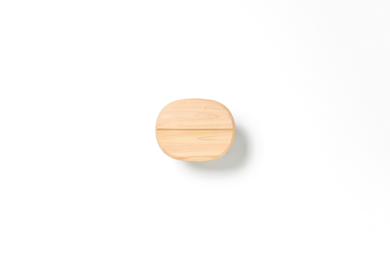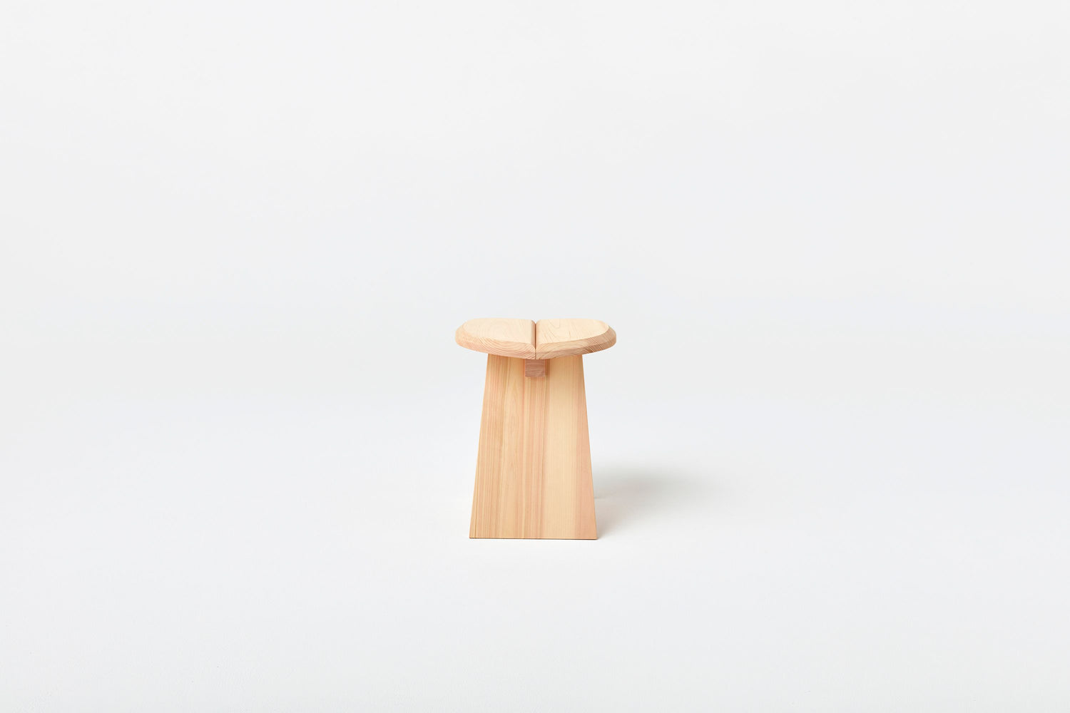 [Each stool is handmade by local craftsmen using solid cypress wood from Gifu Prefecture, where the "more trees forest" is located.