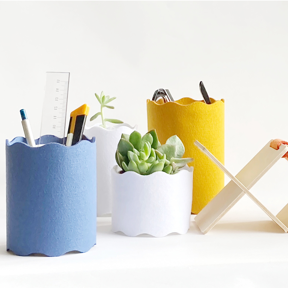 Paper cups are simple and convenient when used as simple stands. We designed the cover based on the paper cup. The paper cup is short size. It is a quick and easy item for pens, carters, scales, scissors, etc.