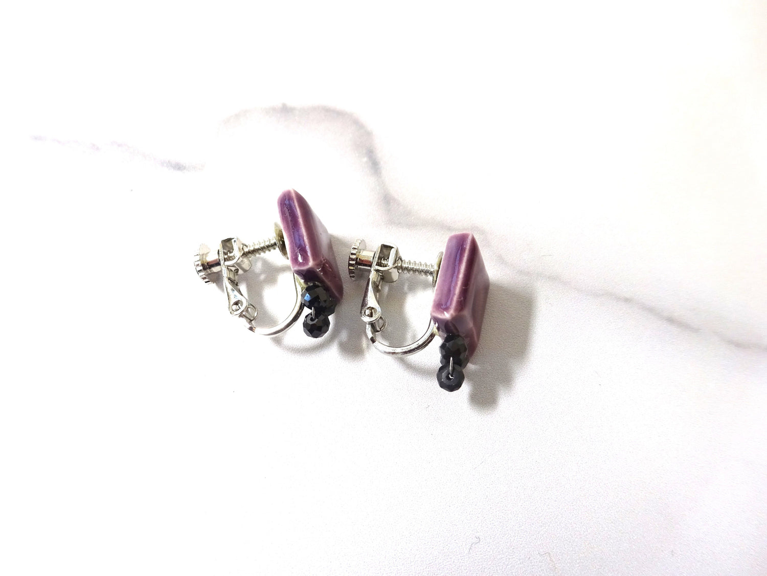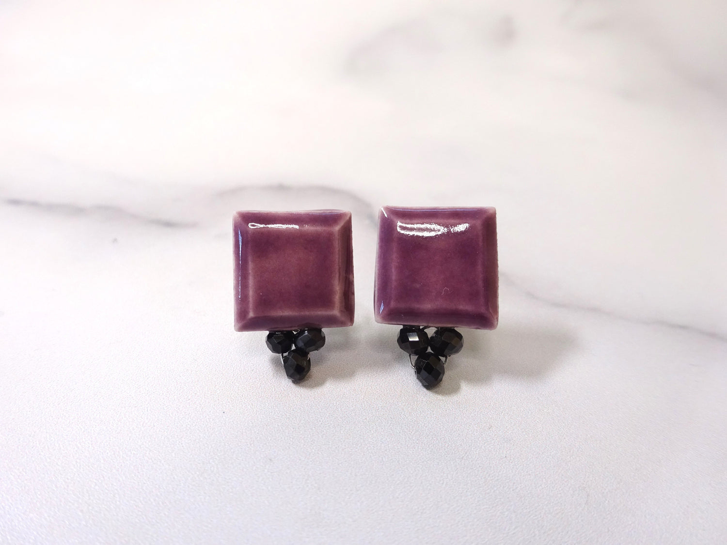 Material: ceramic, black spinel (natural stone), titanium pierced earrings hardware