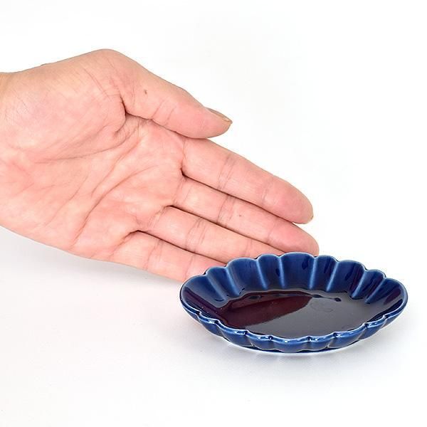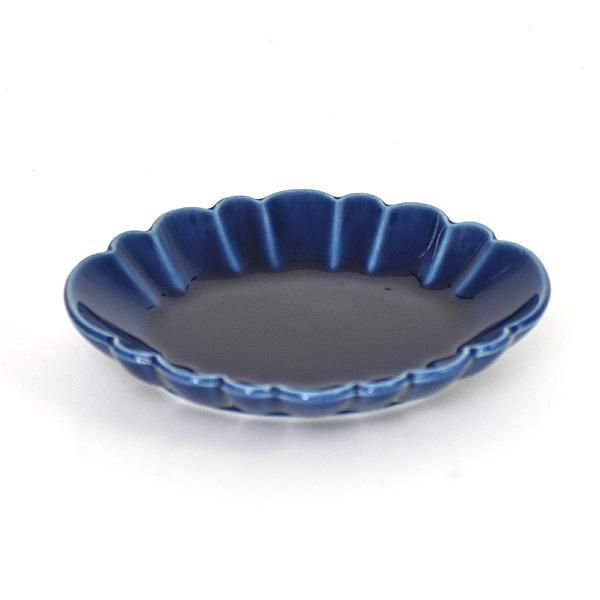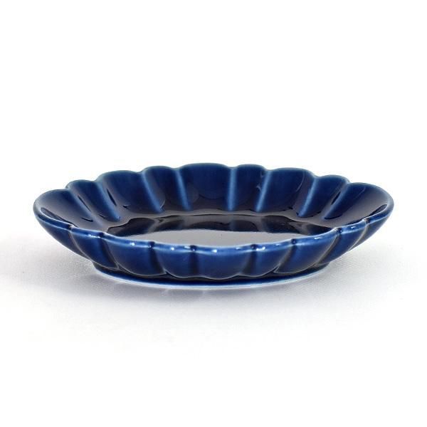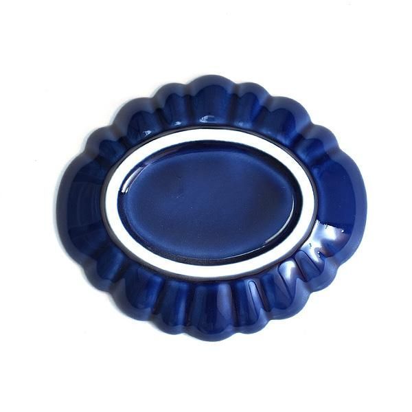 Navy Oval Rinka Small Dish, Blue Japanese Tableware, Shokado, Made in Japan, Minoyaki, Stylish, Modern