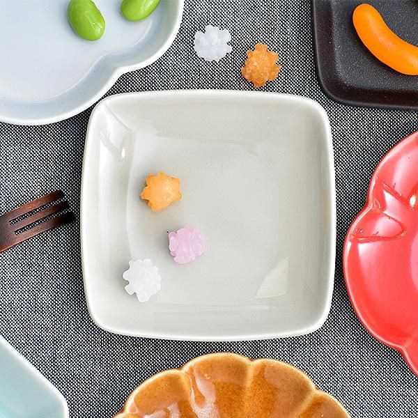 Gray square flat small dish, Japanese tableware, Shokado, made in Japan, Minoyaki, stylish, modern