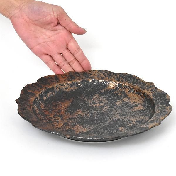 Gold Tataki Kikyo Plate L, gold type, Japanese tableware, medium size, made in Japan, Minoyaki, stylish, modern