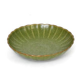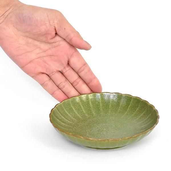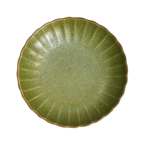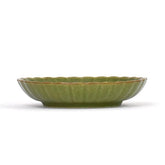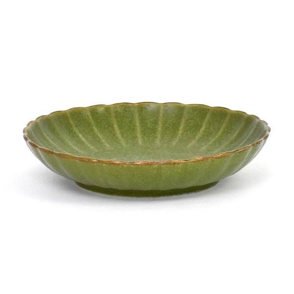 Olive chrysanthemum-shaped serving dish, greenish Western tableware, shaped plate, made in Japan, Minoyaki, stylish.