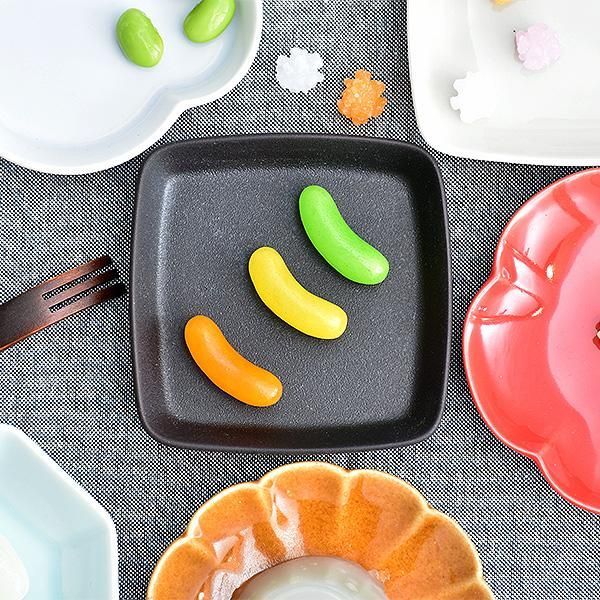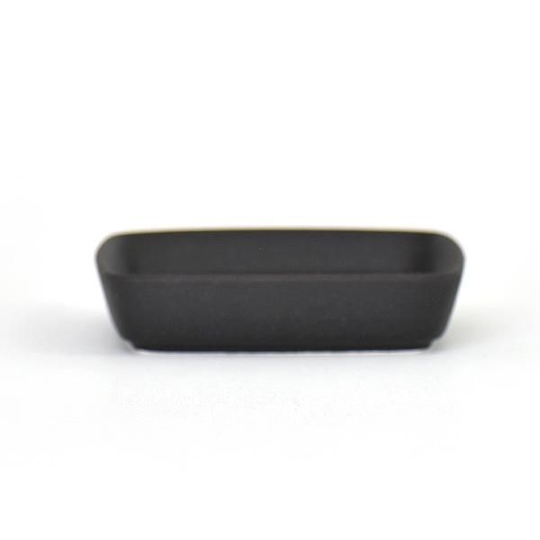 Black square cutout small dish, black type, Japanese tableware, Shokado, made in Japan, Minoyaki, stylish, modern