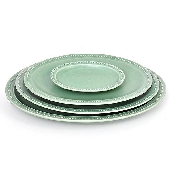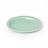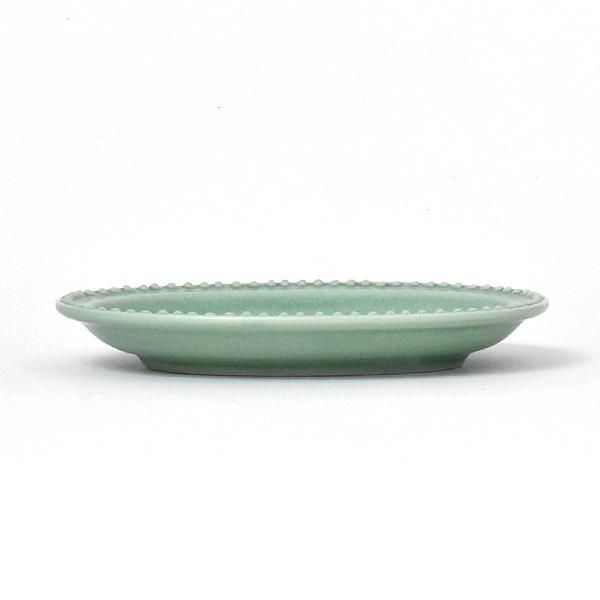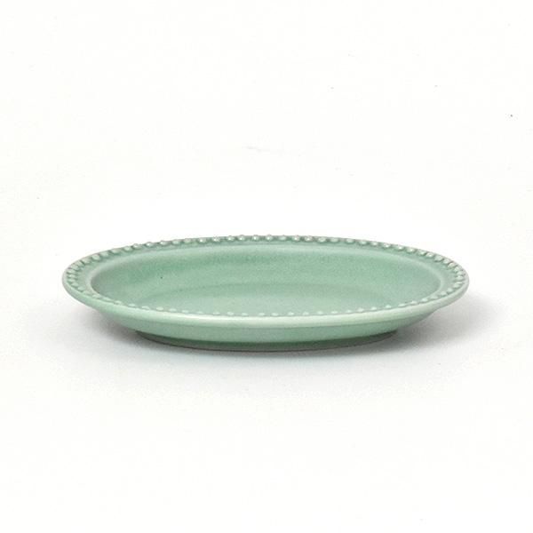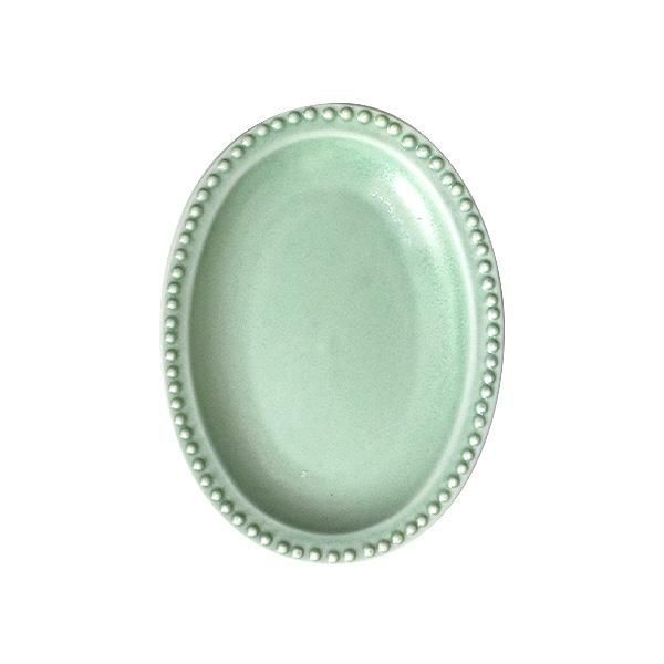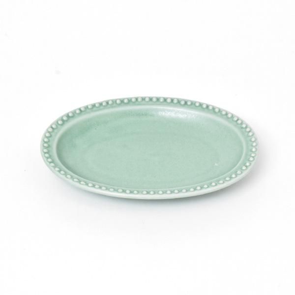 Green Rim Dot 12 Oval Greenish Western Tableware, shaped plate, made in Japan, Minoyaki, stylish.