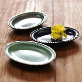 The small 12cm oval is easy to use as a topping plate or a soy sauce plate, and just by placing it on the table, it becomes a lovely accent to your dining table.