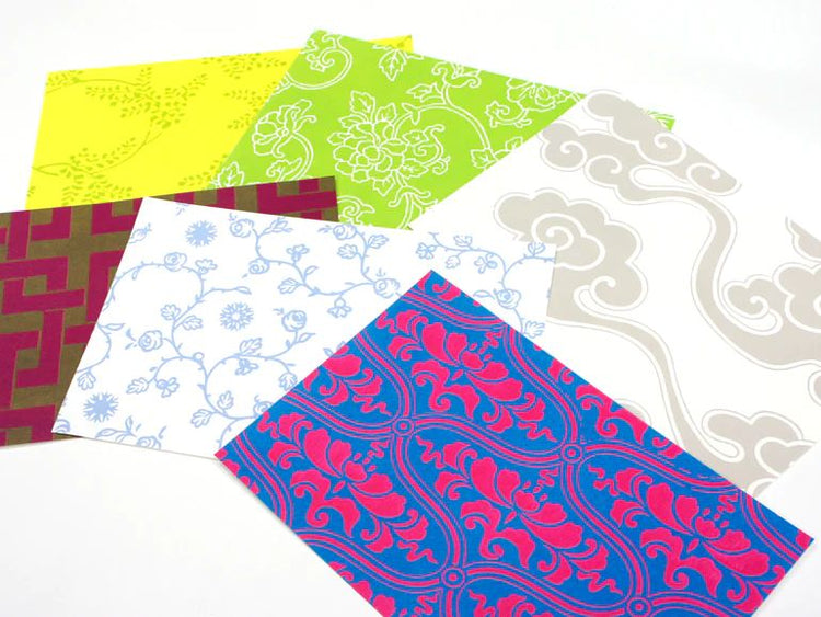 Contains 96 sheets of letterheads in 30 traditional patterns from Kyoto [Unmo Karacho]!