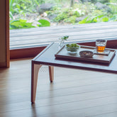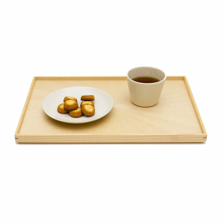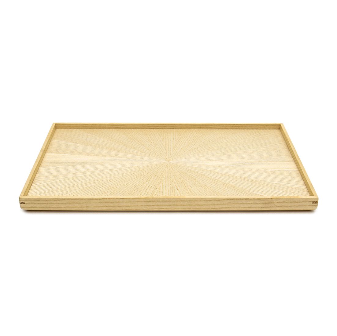 The Rays Tray is a product that takes advantage of the characteristics of the wood grain, which appears different colors depending on the angle from which light hits it and the direction in which it is viewed, by devising a method of laminating the veneers.