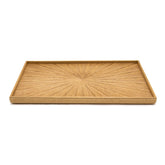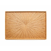 By laminating veneers cut at an acute angle around the center of the tray, the tray looks as if rays of light are coming from the center of the veneer.