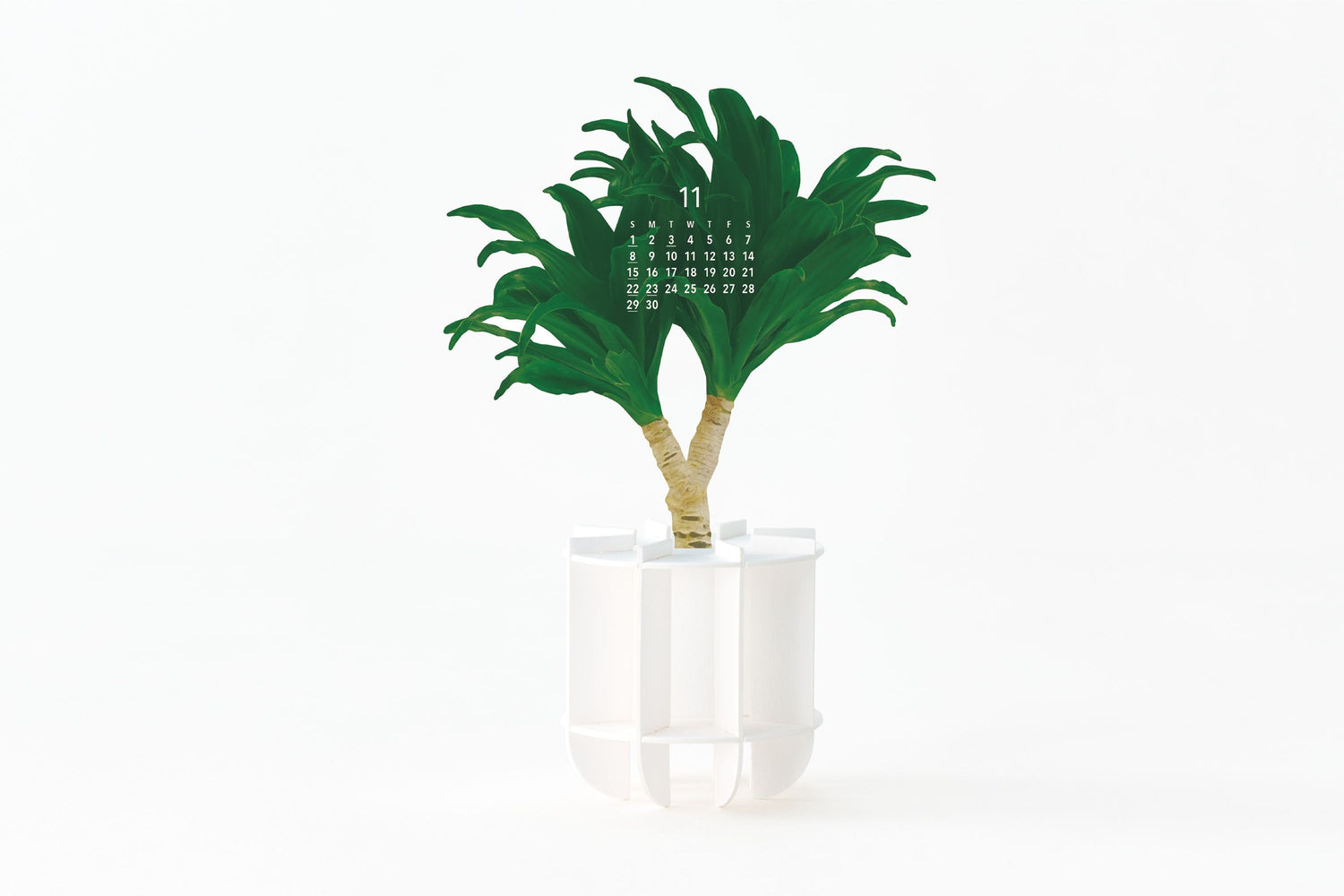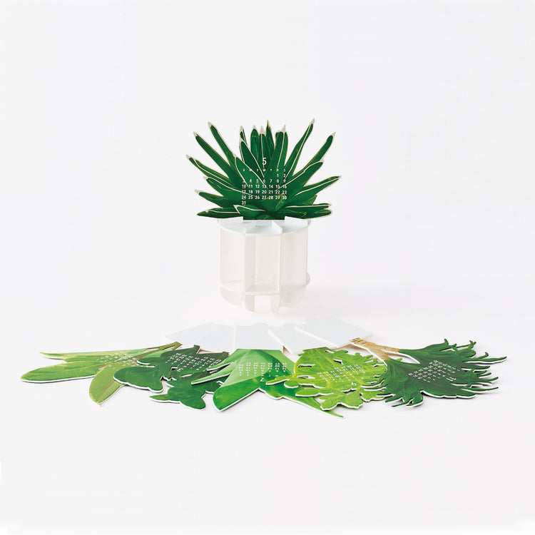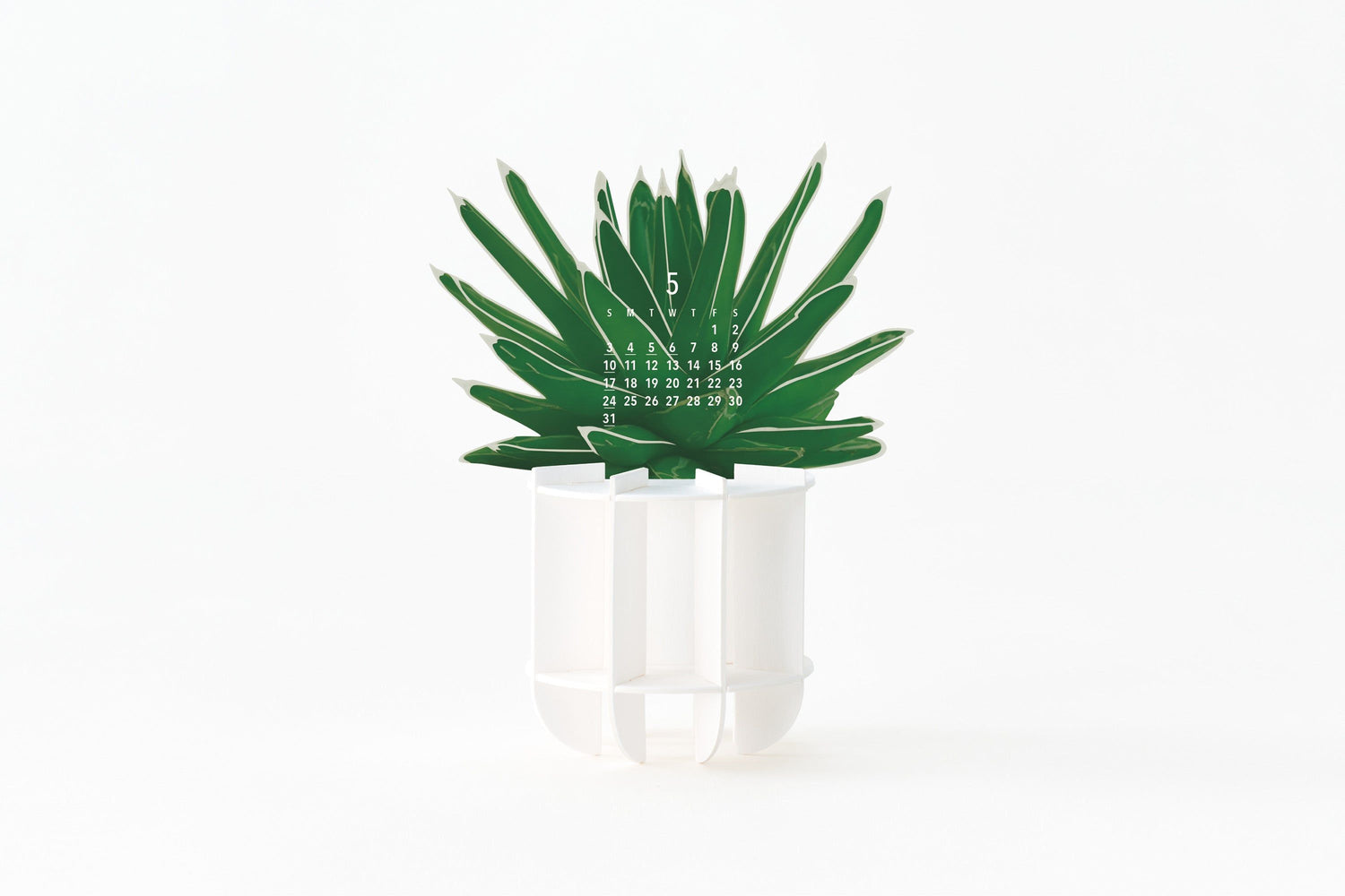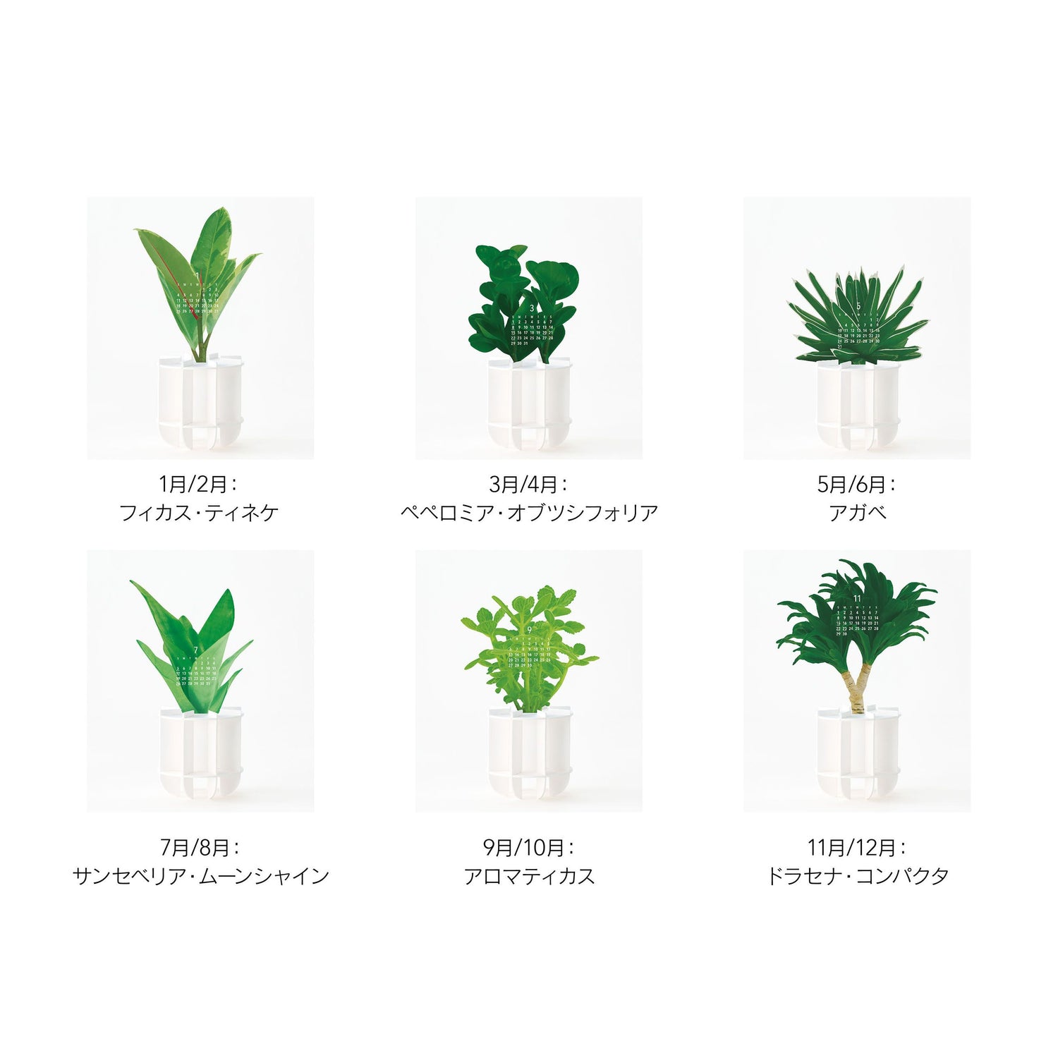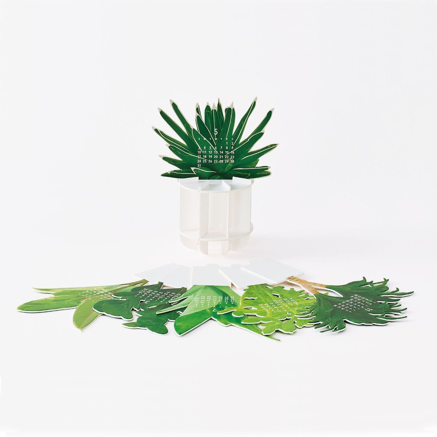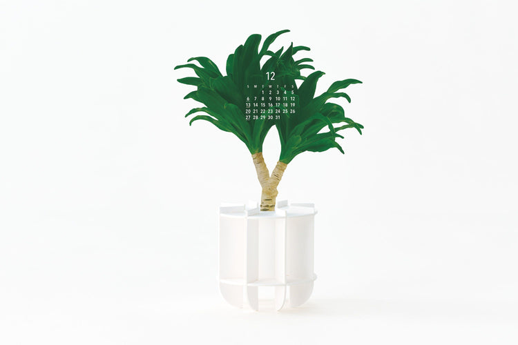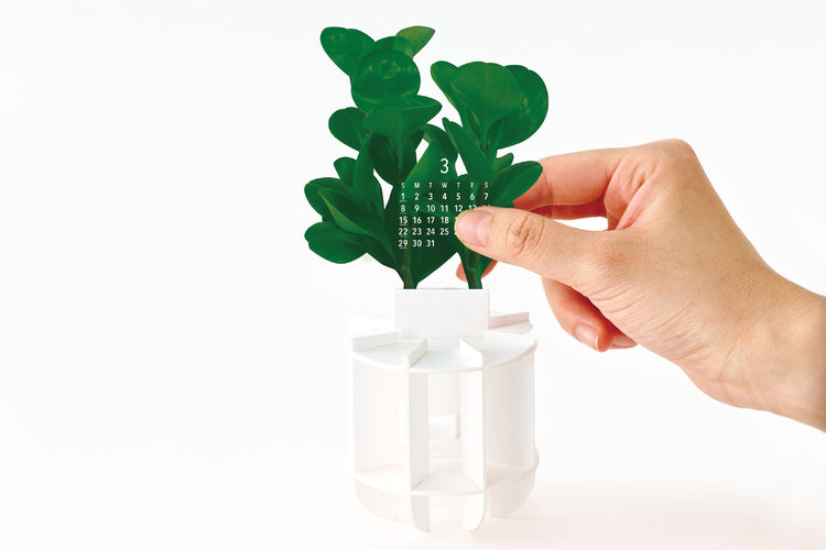 Green is a calendar with a design motif of a houseplant. The pot-shaped base is assembled and a plant is inserted into the base. It is an easy way to enjoy a green lifestyle.