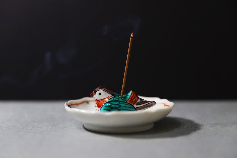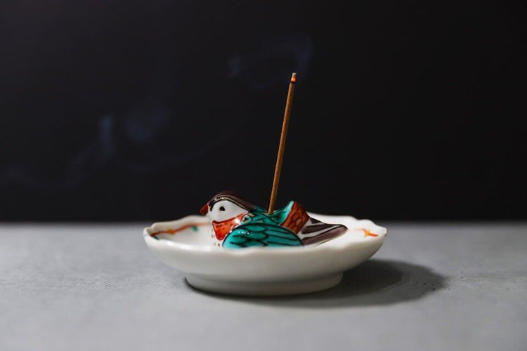 [Eisyou] Oshidori-shaped Incense Stand with Dish (Red)