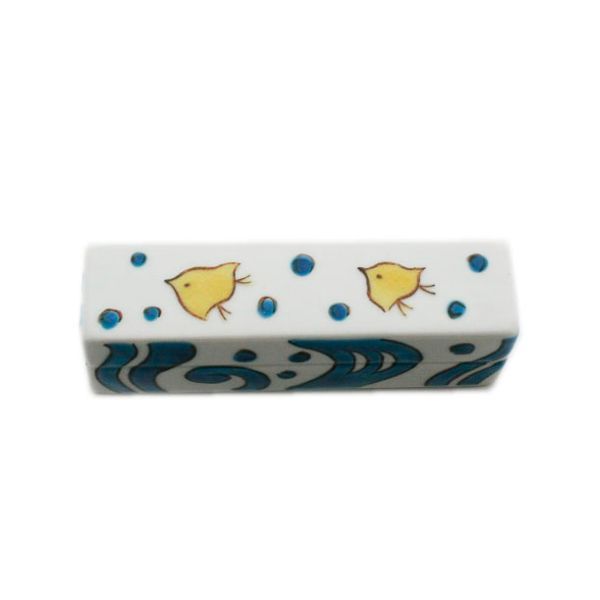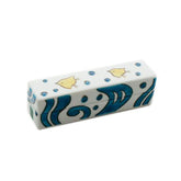 This is a Kutani ware paperweight, the third in a series of Hatoido's calligraphy and painting products. The weight is 380g (large) and 200g (small). The sides of the paperweight have grooves to prevent slipping, and it is resistant to breakage even if dropped. Ten types of Kutani paperweights, both large and small, were created, a rarity in Kutani ware.