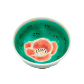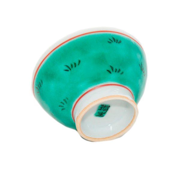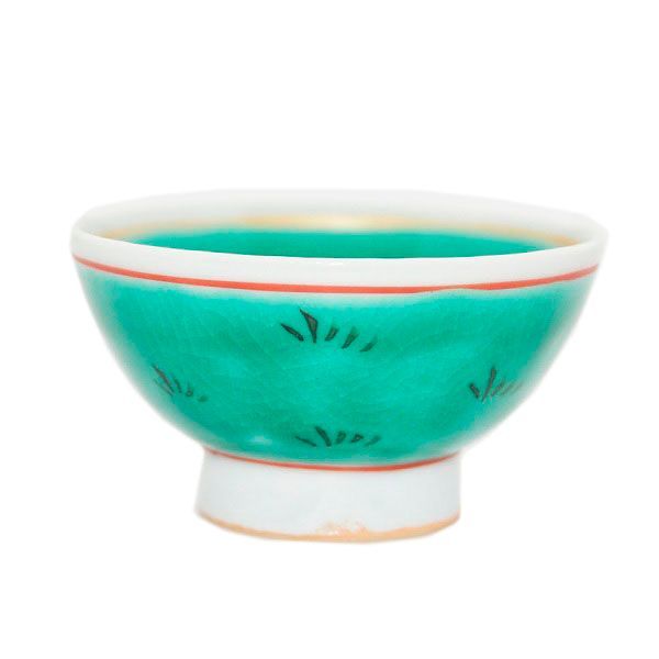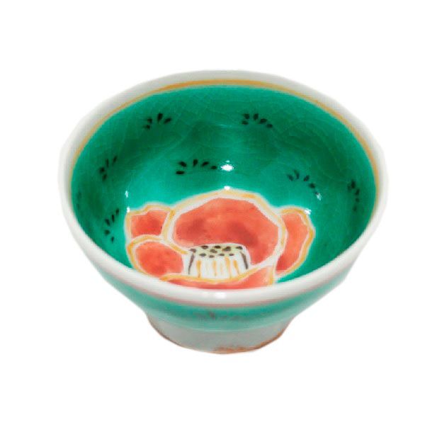 A red camellia is painted on the green unique to Kutani. When sake is poured into the bowl, the red camellia looks bright and the sake will go down a treat. It is also good for use as a delicacy or a small bowl.