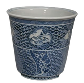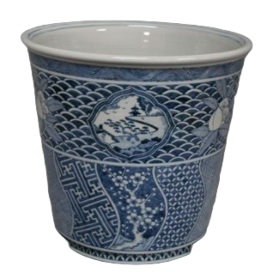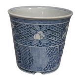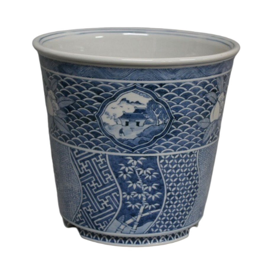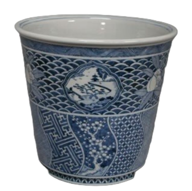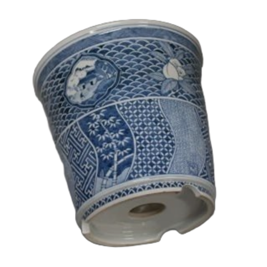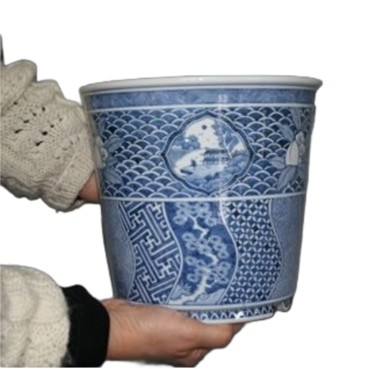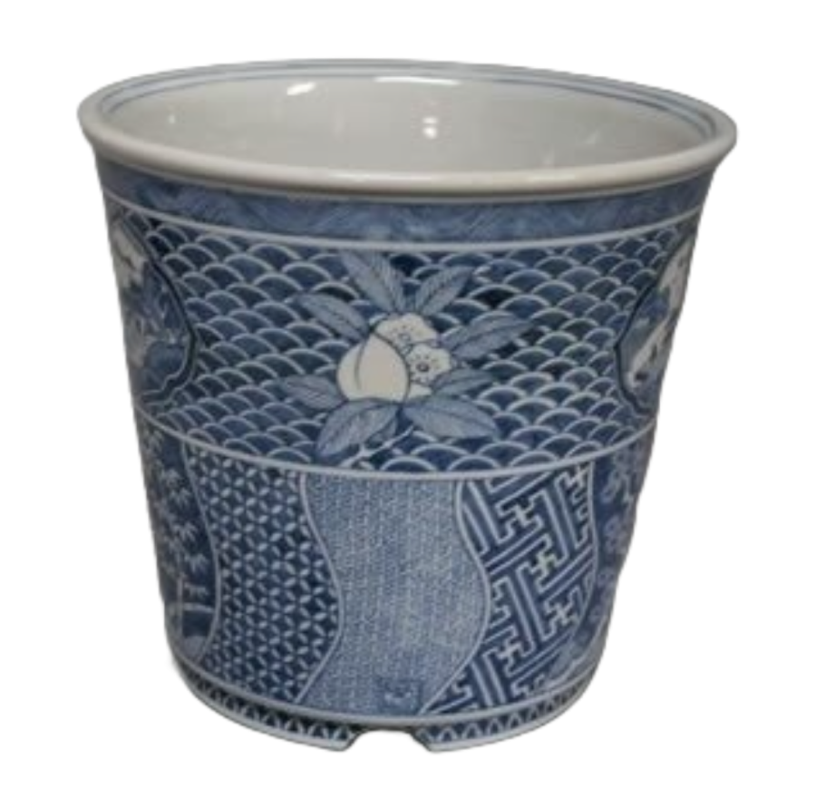 This is a hand-painted Kutani ware orchid bowl. The large, hand-hewn bowl is beautifully decorated with fine small patterns in underglaze blue.