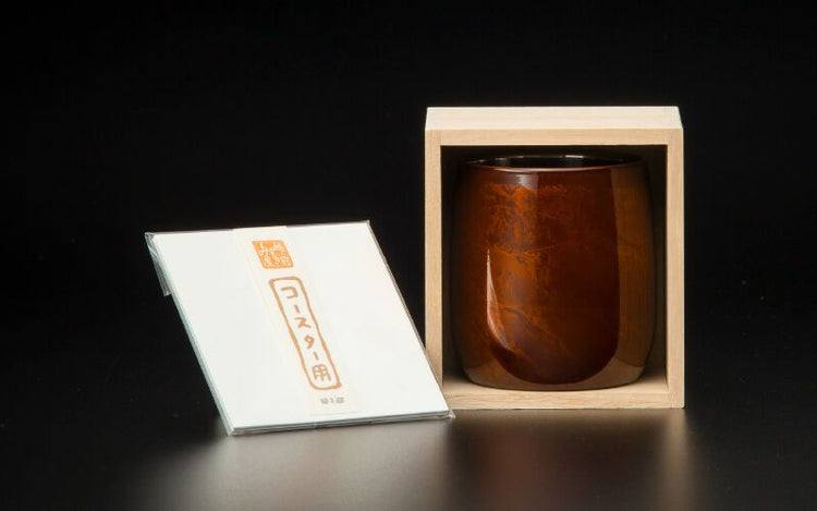 All of the Urushi-Polished Cups, with the exception of the "Red Fuji with Crane" series, are accompanied by coasters made of Echizen Washi, a traditional craft of Echizen City, Fukui Prefecture.