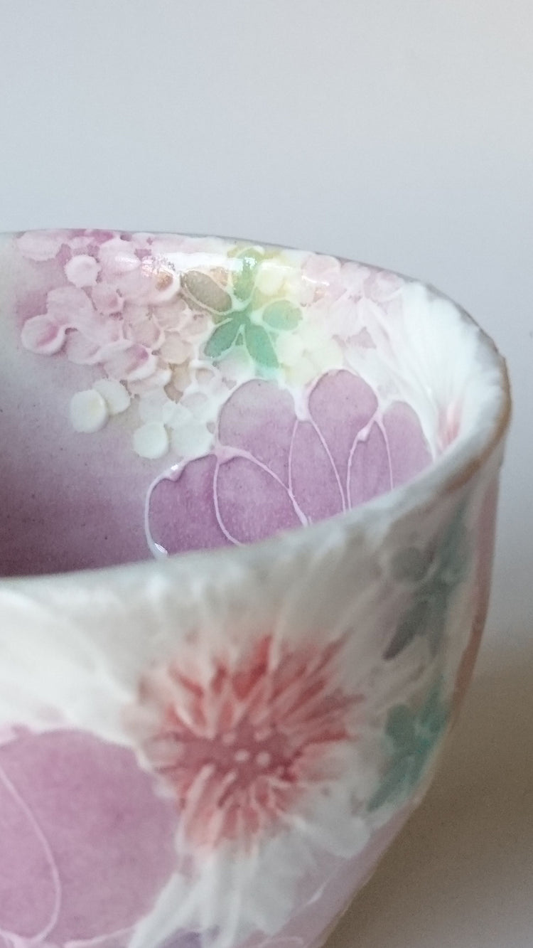 This mug features a gentle floral pattern in the reddish-purple and reddish-purple colors that have been used in Japan for centuries.