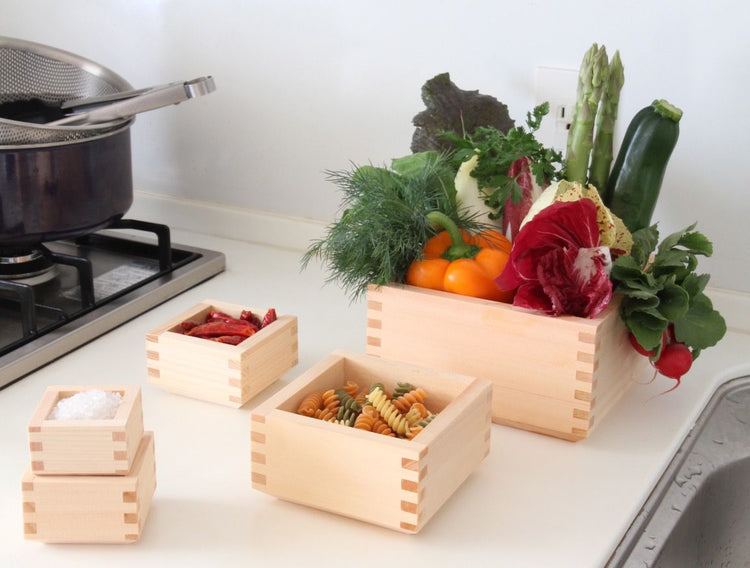 Redesign of Masu. The bottom corners are cut at an angle to make it more comfortable in the hand and stackable. [A portion of the proceeds from the sale of this product will be used for the activities of more trees].