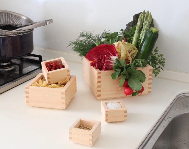 Redesign of Masu. The bottom corners are cut at an angle to make it more comfortable in the hand and stackable. [A portion of the proceeds from the sale of this product will be used for the activities of more trees].