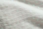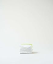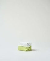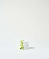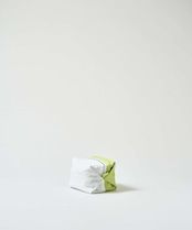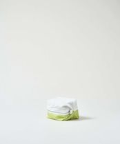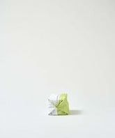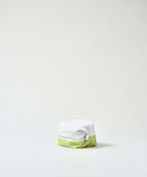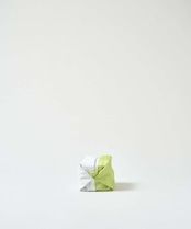 It is made of a crisp fabric with aurora lame dots scattered over translucent white, and a jacquard weave fabric with lame thread mixed with bright lime color.