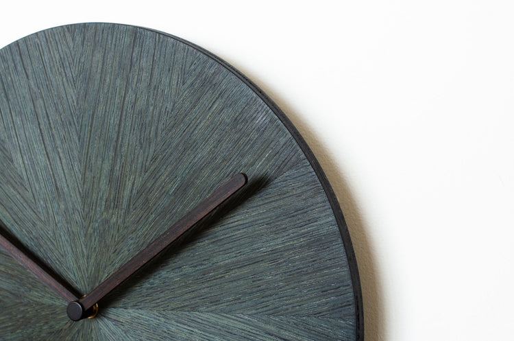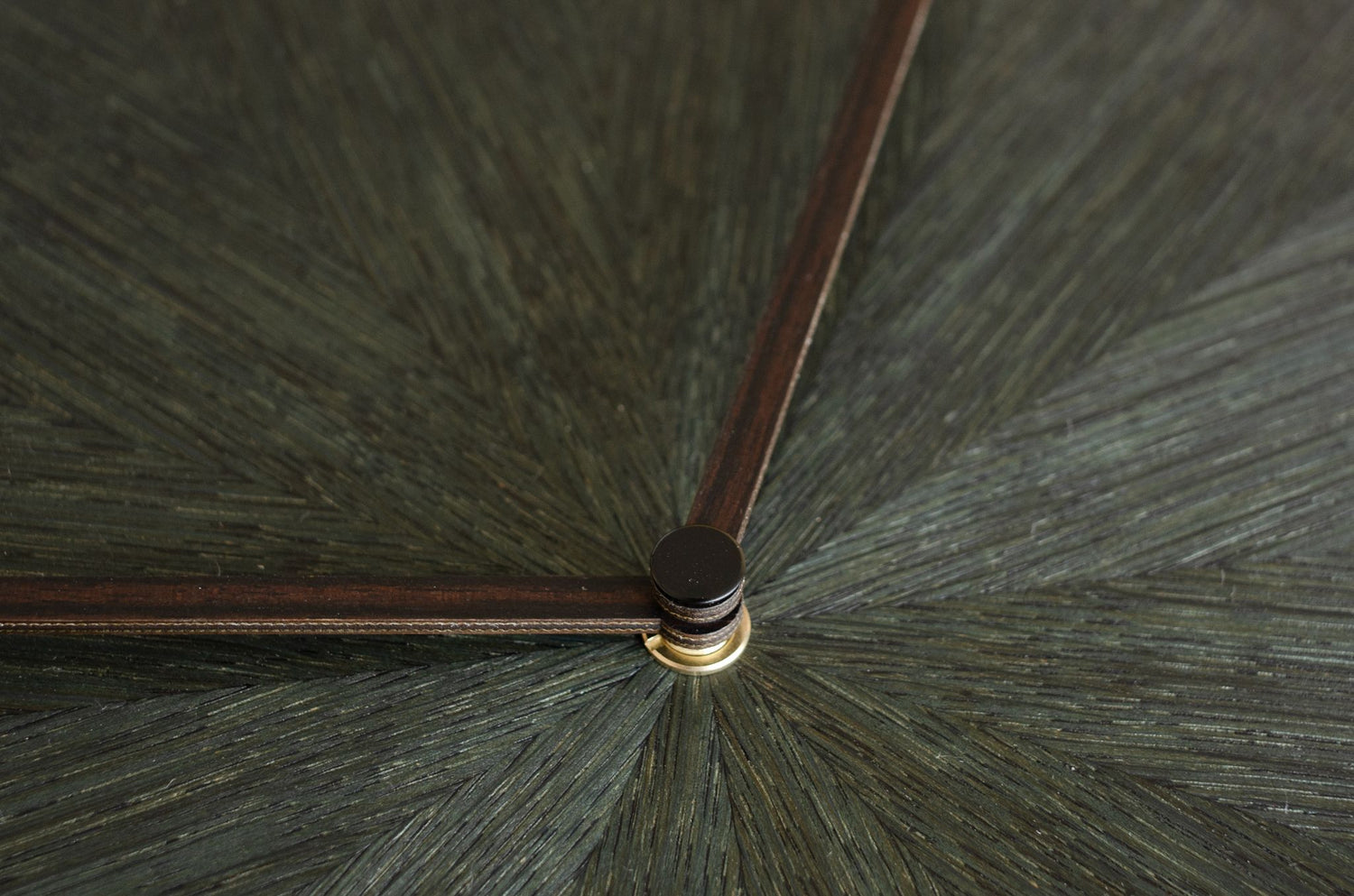 나무는 빛의 각도와 보는 방향에 따라 다양한 색상으로 보이는 특징이 있습니다. 이러한 특징을 활용하여 베니어를 삼각형으로 잘라 원형으로 붙여 마치 중앙에서 빛이 나오는 듯한 디자인을 구현했습니다.