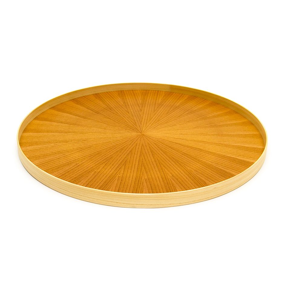 트레이 중앙을 중심으로 예각으로 자른 베니어를 적층함으로써, 트레이는 마치 베니어 중앙에서 광선이 나오는 것처럼 보입니다.