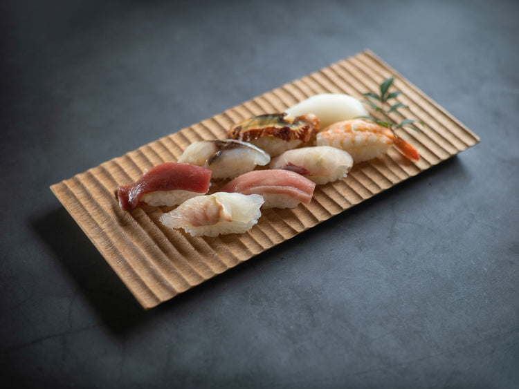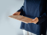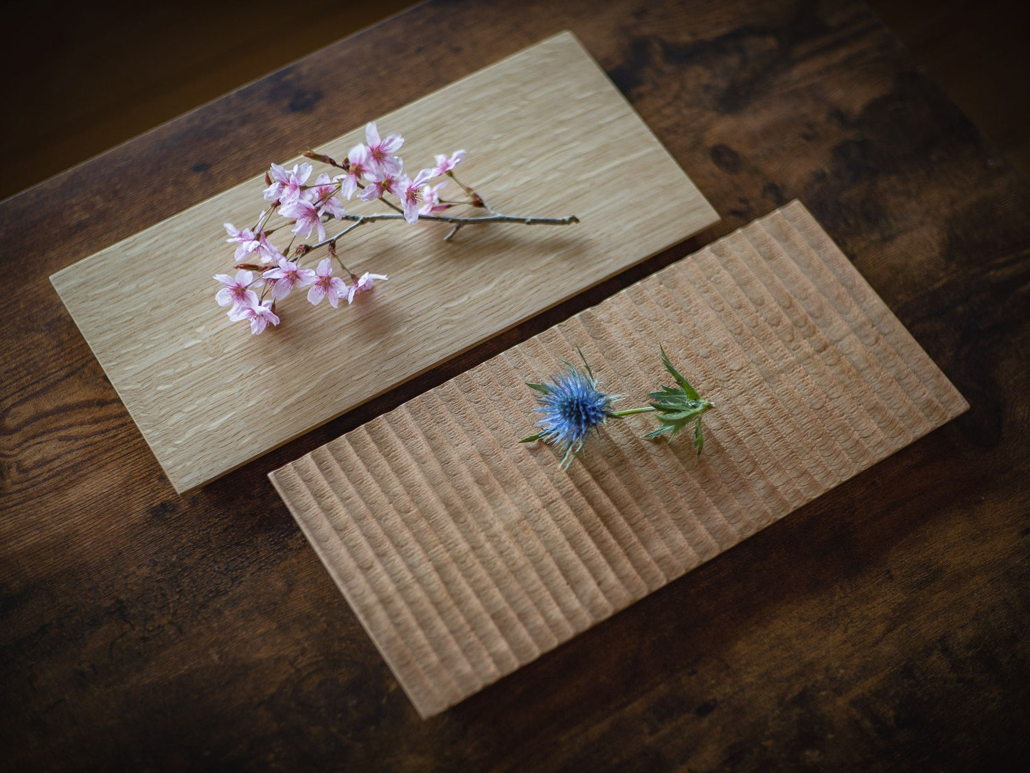 "츠키이타"는 아름다운 나뭇결을 가진 나무를 엄선하여 얇게 썰어 만듭니다. 남은 나무 조각을 "츠키지리"라고 합니다.