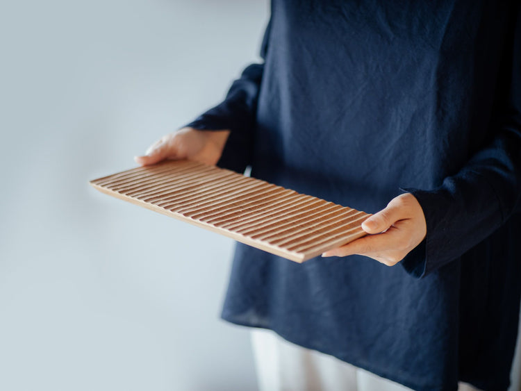 같은 수종이라 할지라도 나무 하나하나의 나뭇결은 자라온 환경에 따라 저마다의 개성과 차이를 지닙니다. 츠키지리 나무판은 나무의 결, 즉 자연 소재만이 만들어낼 수 있는 자연의 아름다움을 느낄 수 있는 접시입니다. 츠키지리는 애초에 단순한 제품으로 기획된 것이 아니었습니다. 그렇기에 모든 것은 하나뿐인 특별함을 지닙니다. 어딘가 숲에서 온 나무의 따스함을 접시를 통해 느껴보세요.