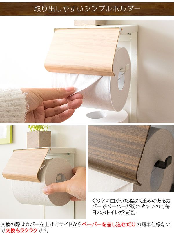 Easy-to-remove paper can be replaced simply by inserting it from the side. Vertical space-saving design allows stock to be placed under the holder for a comfortable bathroom.