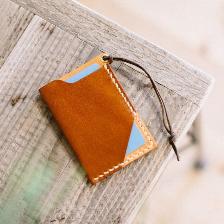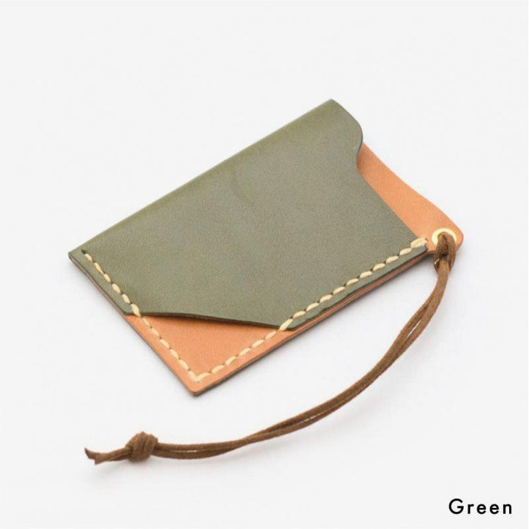 대조적인 가죽 색상의 핸드스티치 패스케이스