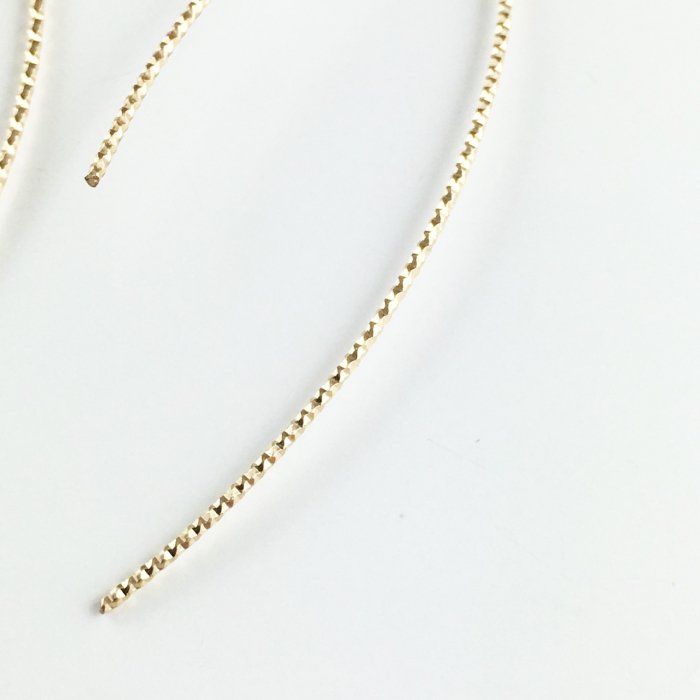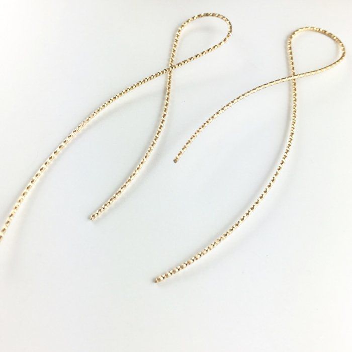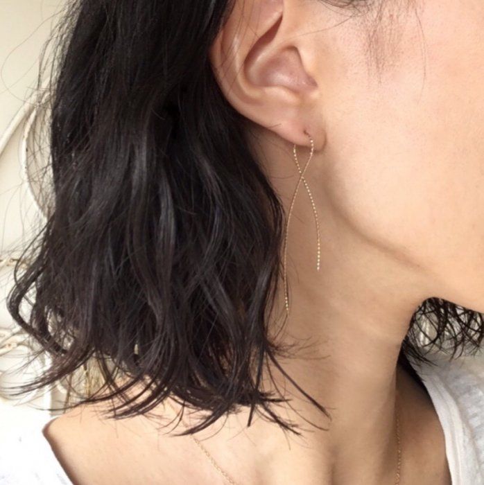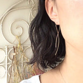 매우 여성스러운 존재감과 부드러운 곡선을 지닌 와이어 피어싱 귀걸이.