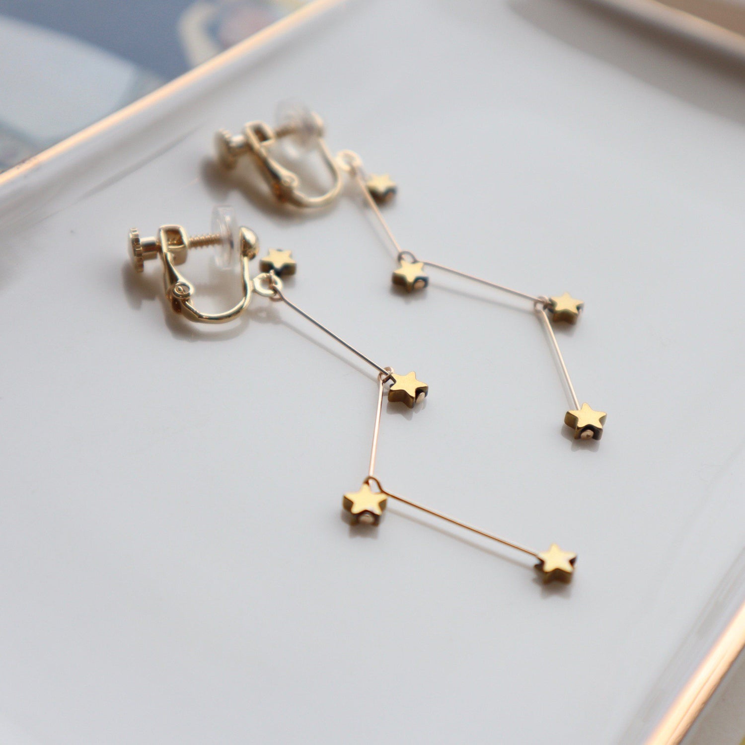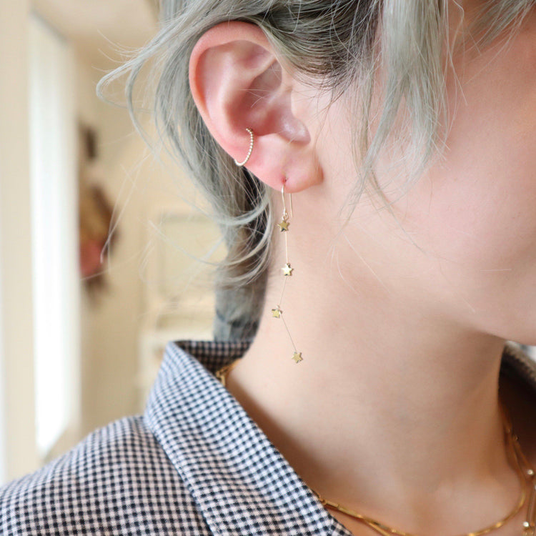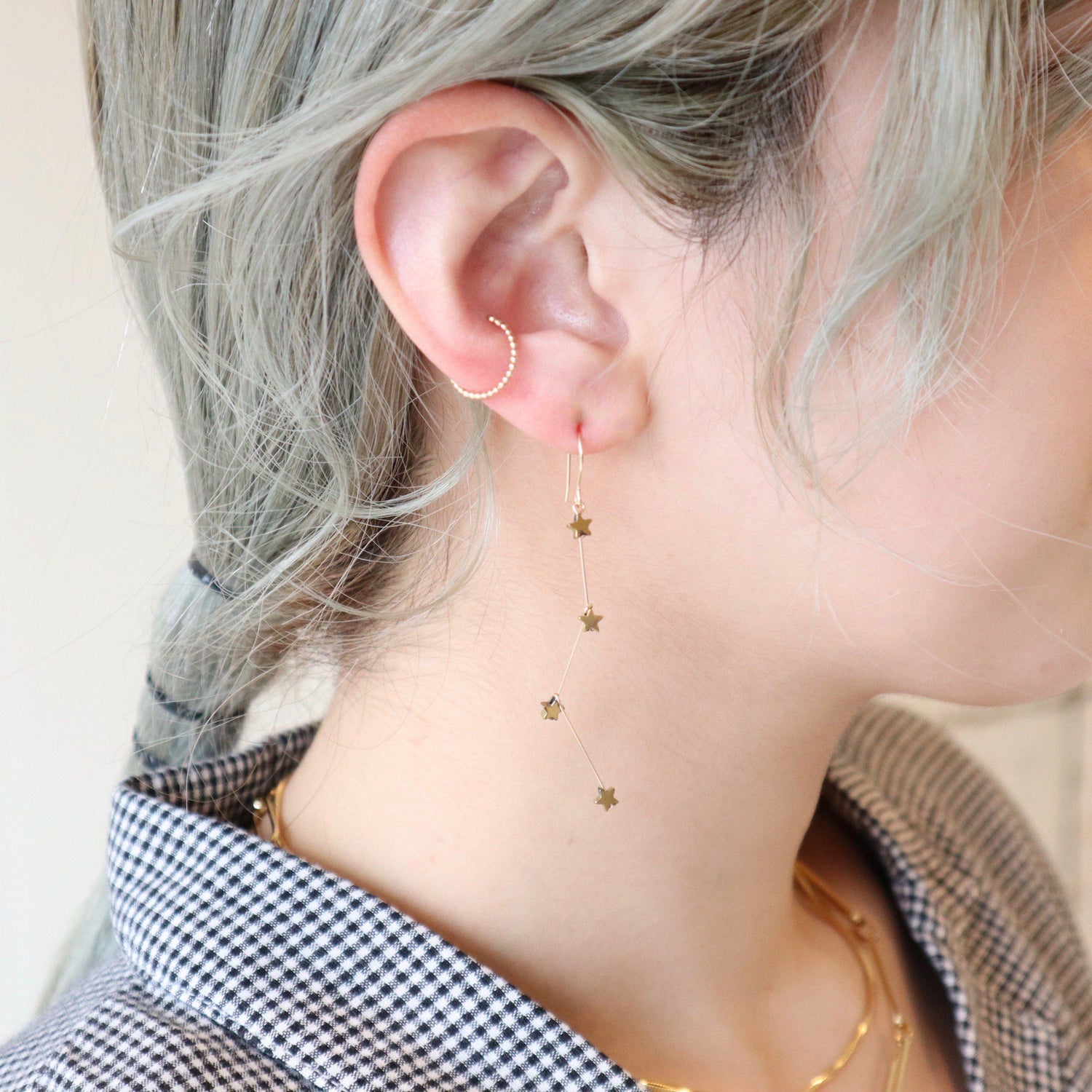 작은 별들이 별자리처럼 리드미컬하게 흩어져 있는 피어싱/귀걸이.
