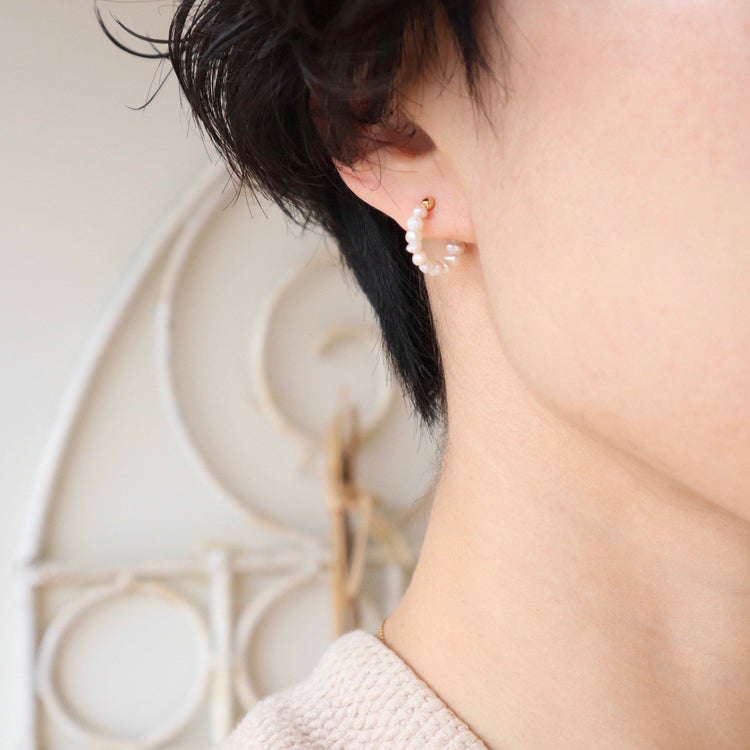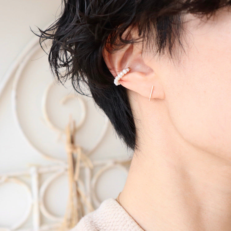 이 이어커프의 매력은 진주를 모아 반짝이는 효과를 내는 섬세하고 절제된 방식에 있으며, 자세히 살펴보면 담수 진주의 자연적으로 생긴 뱀 모양이 표현력이 풍부한 모습을 보여줍니다.
