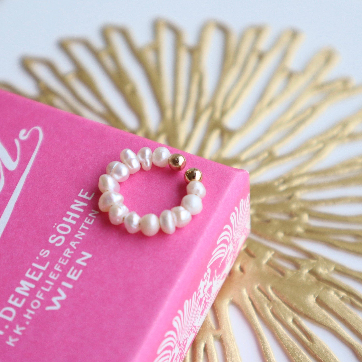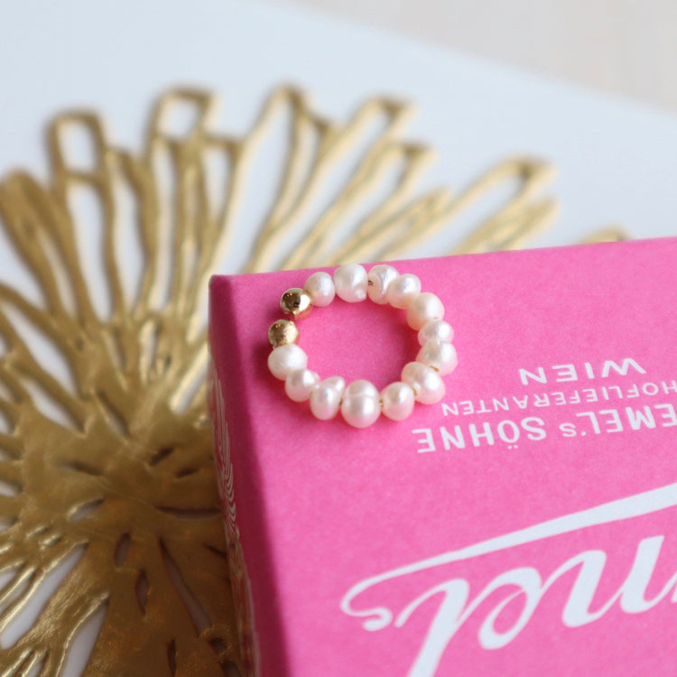 진주의 고급스러움과 반지의 느슨한 느낌이 딱 좋은 악센트를 더해줍니다.