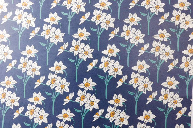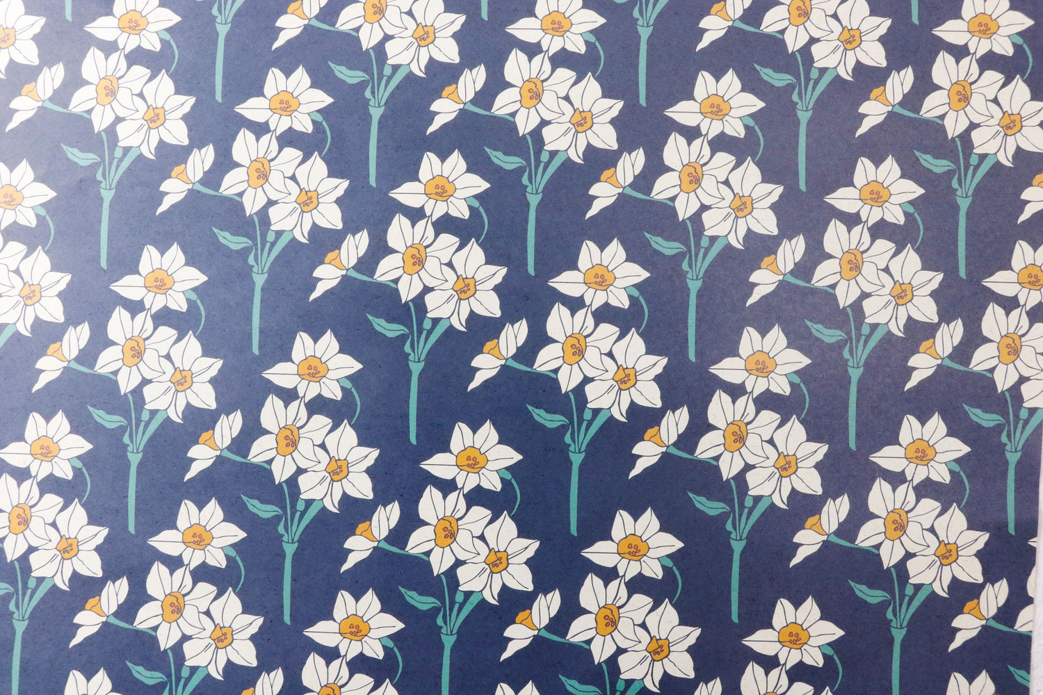 활짝 핀 수선화가 그려진 오리지널 레트로 모던 포장지