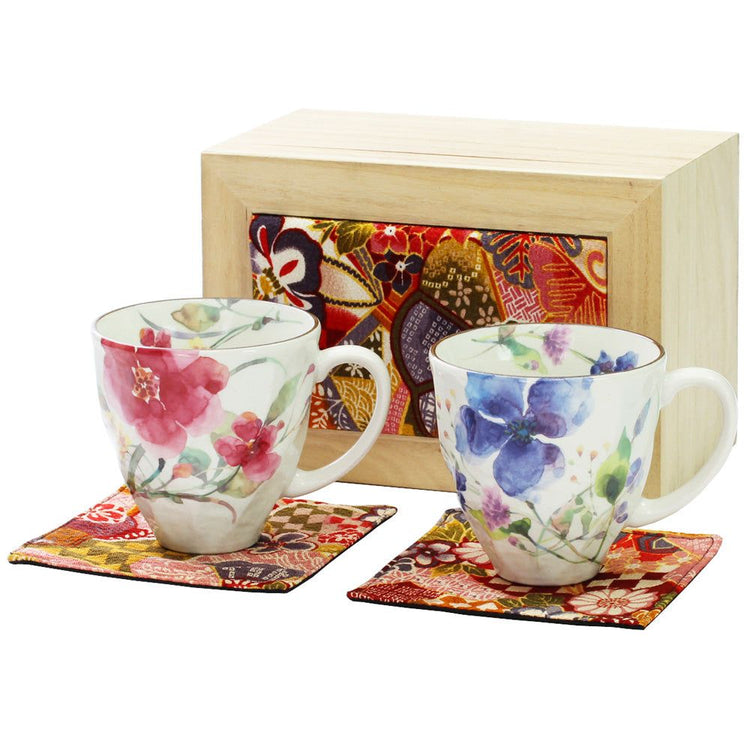 꽃 수채화 머그컵 한 쌍 (치리멘 나무 상자)(01801)