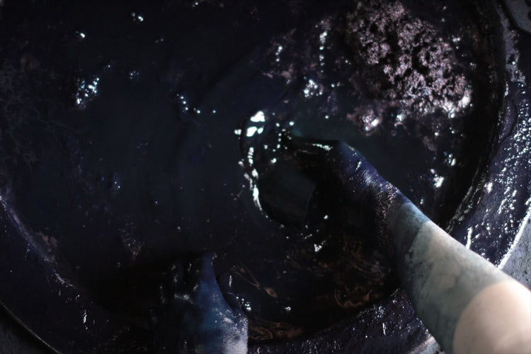 이것은 쪽빛으로 염색한 가죽[미가키]으로 만든 인장 케이스입니다.