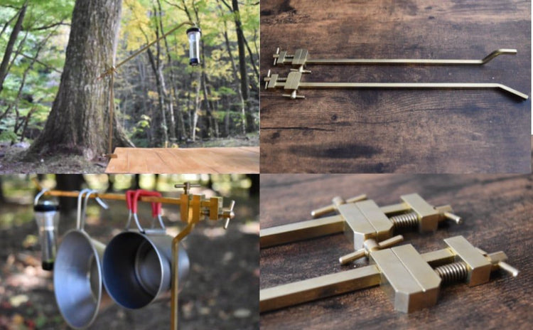 ●두 가지 종류의 황동 하타가네를 조합하면 2Way 캠핑 장비로 변신! 랜턴 스탠드, 랙