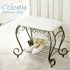 The entrance chair from the popular [Celestia] series has a sophisticated design with curved decorations and a comfortable antique gold color.