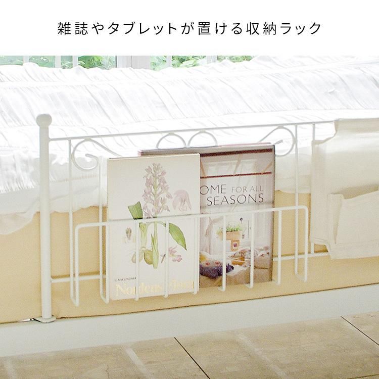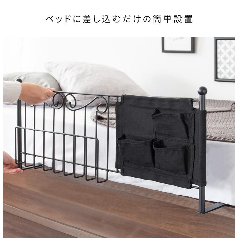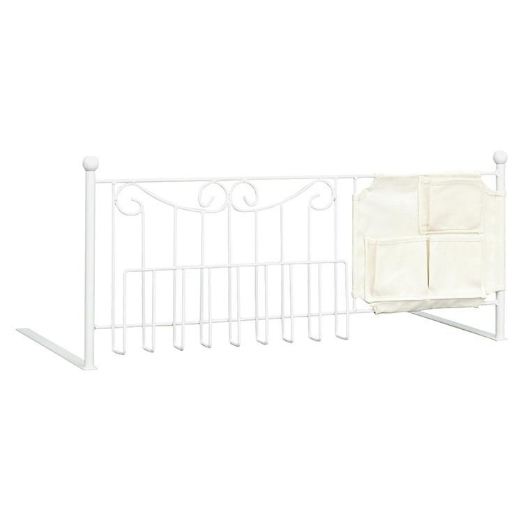 Simply insert it under the mattress to prevent the bedding from slipping out. The convenient design includes a storage rack for magazines and newspapers and a cloth cover with three pockets for cell phones, remote controls, and other small items.
